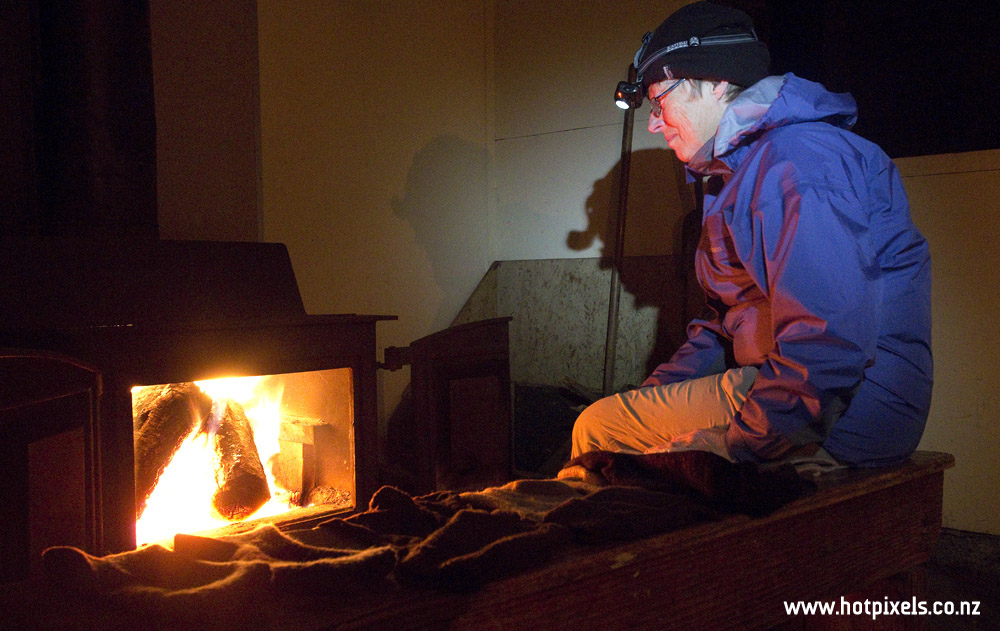 Plenty of bunk room in the hut but no firewood. Oh well, we should get warm from the 20 something bodies. We spent many hours being entertained by John’s match tricks, stretching competitions from the ladies, and sit-down dancing demonstrations from the ladies. Shame my cramp prevented me from joining in.