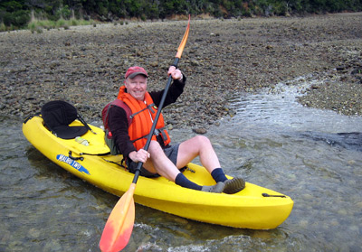 Borrowing Barry James’ double-seater sit-on canoe was genius, as our work was halved. (Although Ian would say the effort was more like 80-20).