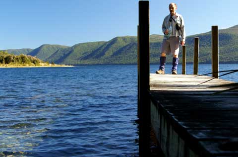Wow! was the comment one passenger at first sight of Lake Rotoroa. 12 of us arrived at this tranquil lake in three cars. People doing the sand fly dance soon disturbed the peaceful scene.