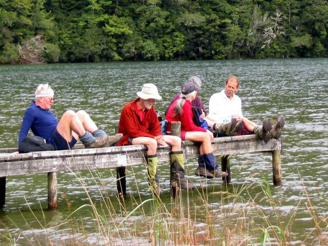 Morning tea party at Lake Daniells Hut
