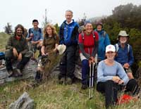 We were lucky with our chosen day. The views to the Rai Valley and over the Richmond Ranges were good, but the horizon still had that Nelson haze. We had a long lunch in the sun and carefully picked our way down with only a few slips and no injuries. Participants were: Emily Gee, Beverley Muirhead, Pete Peters (non member) and English language school students Mayumi Otani, Hiroko Toyomasu and Mami from Japan.
