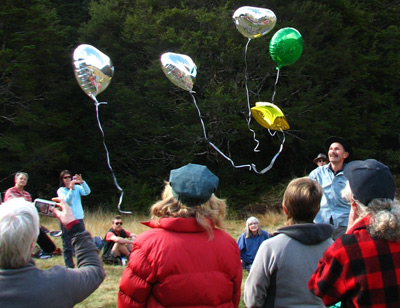 The formalities concluded with poems read by Pat and Robyn followed by the release of several helium balloons. These ascended high and drifted very satisfactorily in the light breeze.