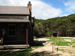 Since the December flood, the bush-clad slopes along the track to Whariwharangi Hut showed a lot of scarring, the granite rock swept clean of vegetation. Around the hut enormous amounts of silt were evident but tidied.